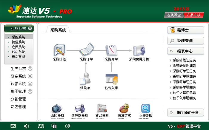 應收分析報表、應付分析報表、配送報表、開票管理報表、POS銷售報表、售后報表、客戶關系報表。